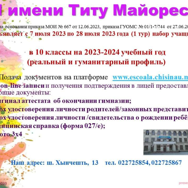 Относительно приёма учащихся в лицейское образование, сессия 2023