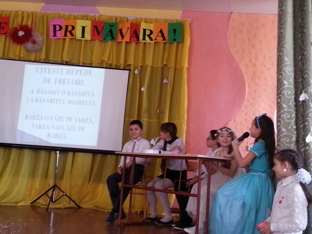 Весна вторглась в наш лицей с удивительной Викториной по румынскому языку и литературе. Уверяем вас – было не скучно! Ученики начальной школы не только поделились своими знаниями друг с другом, а также проявили артистизм и находчивость! Браво!