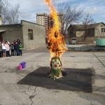 Мы окончательно попрощались с зимой и по традиции сожгли соломенное чучело во дворе школы. Благодарим Кожевникову Ларису Александровну и родителей ее учеников за создание такой чудесной Масленичной куклы, которая украшала своим присутствием фойе всю неделю начальной школы и отдала себя в жертву ради прихода весны. Есть поверье, что это принесет нашему лицею обновление и успех в последующем году.