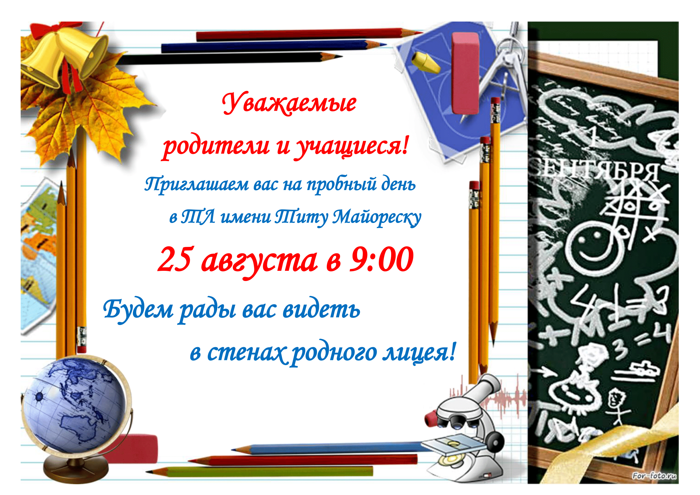 Приглашение на пробный день в лицее