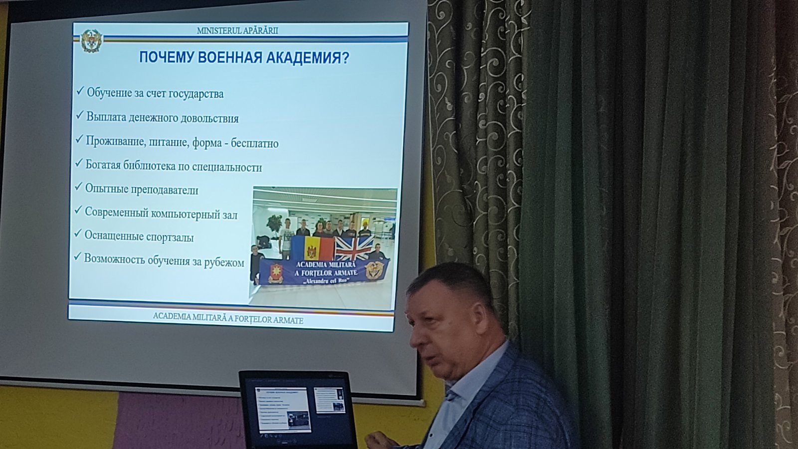В рамках профориентации 17.11.2022 в нашем лицее состоялась встреча учащихся 10-12 классов с представителями Военной Академии РМ „Александру чел Бун”.
