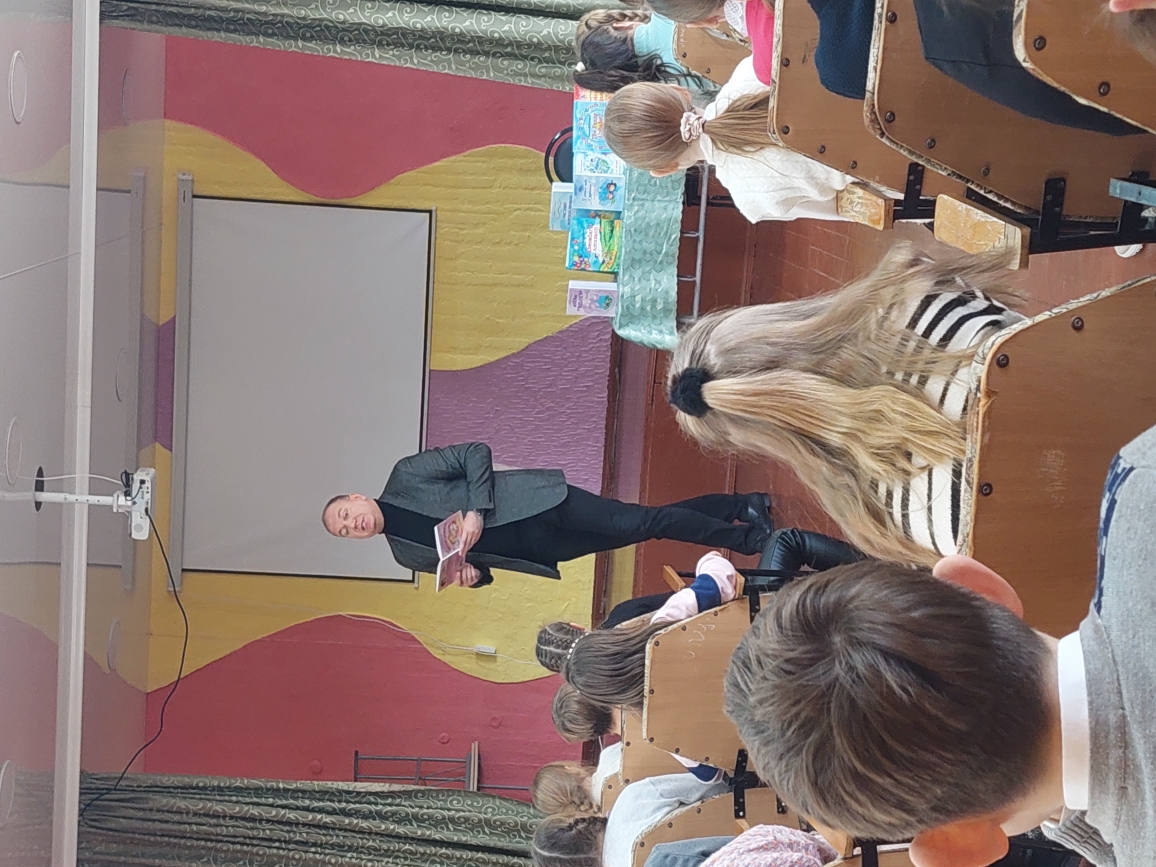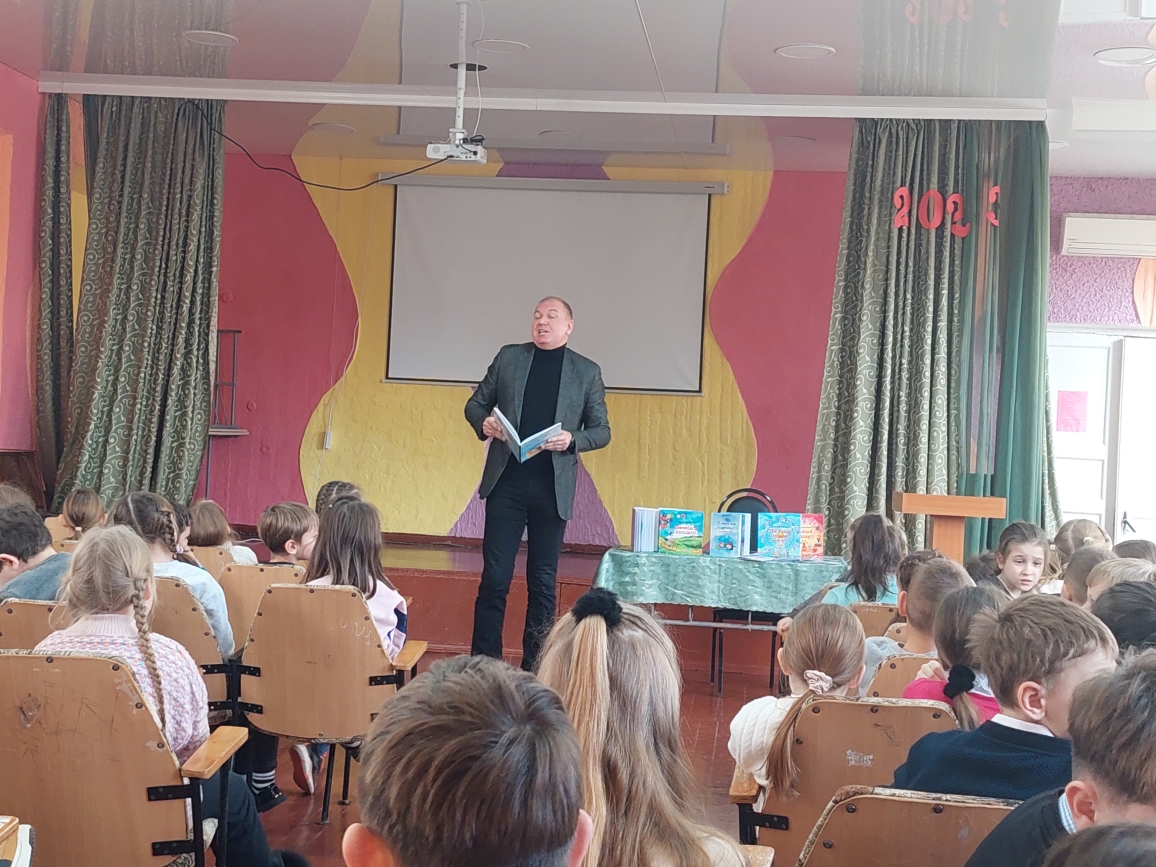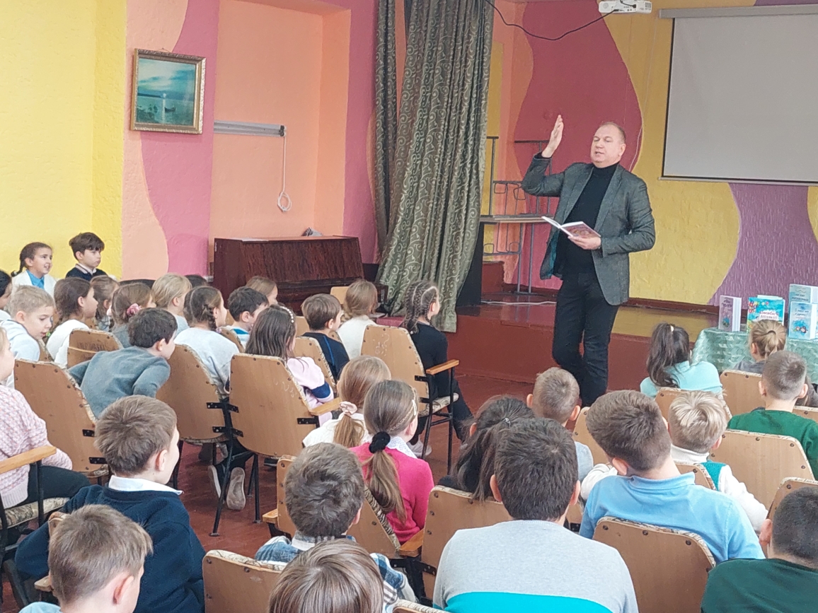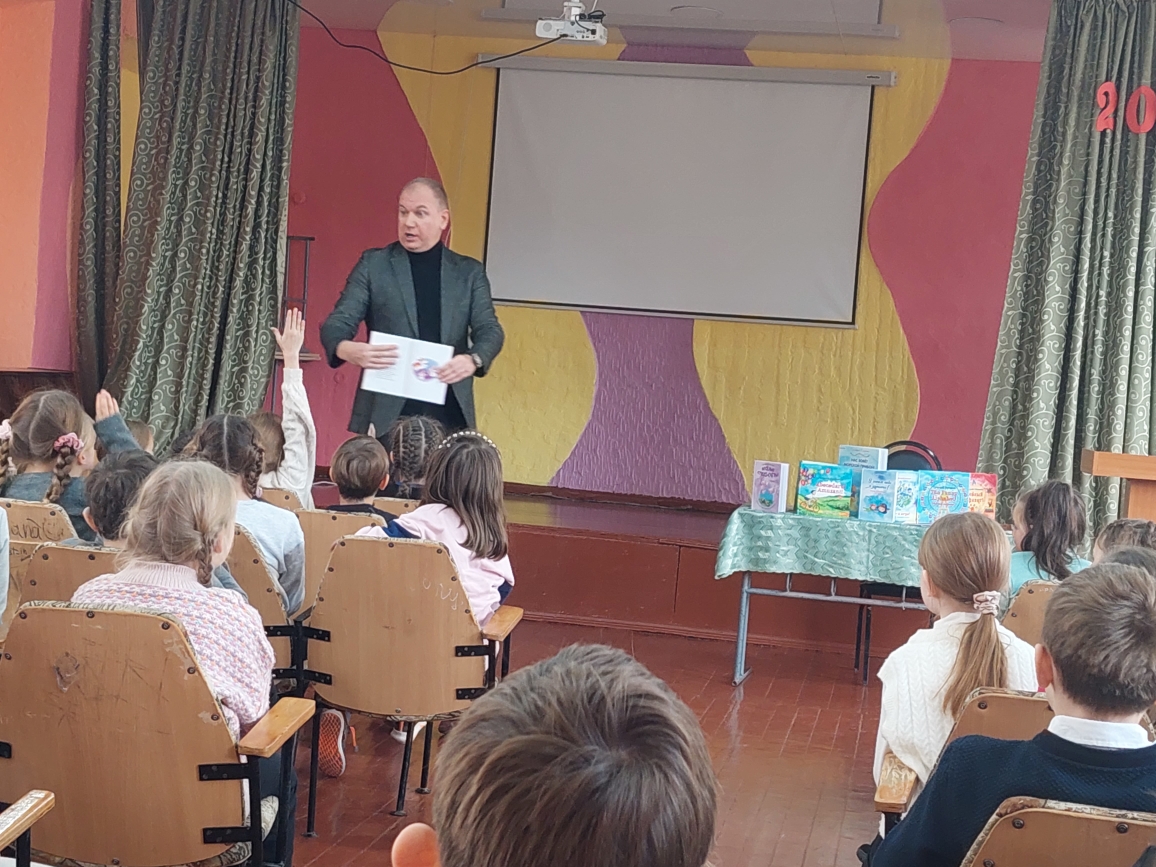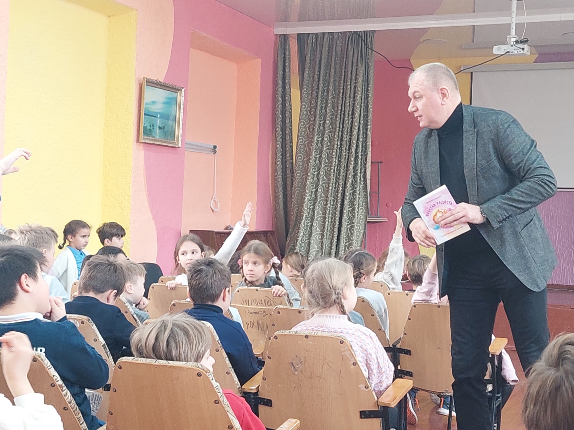 Сегодня в лицее состоялась встреча с поэтом Григорием Гачкевичем. Автор замечательных детских книг рассказал учащимся 2-4 классов о том, как создаются книги, поговорил с ними о поэзии, о рифме, прочитал некоторые свои стихотворения и поиграл с ребятами. Дети с большим удовольствием слушали настоящего поэта, с нетерпением задавали ему множество вопросов. В конце встречи автор вручил детям подарки в виде своих произведений с пожеланиями и автографами и по книге на каждый класс, а библиотеке подарил несколько своих книг. Выражаем огромную благодарность Григорию Гачкевичу за столь интересную встречу!