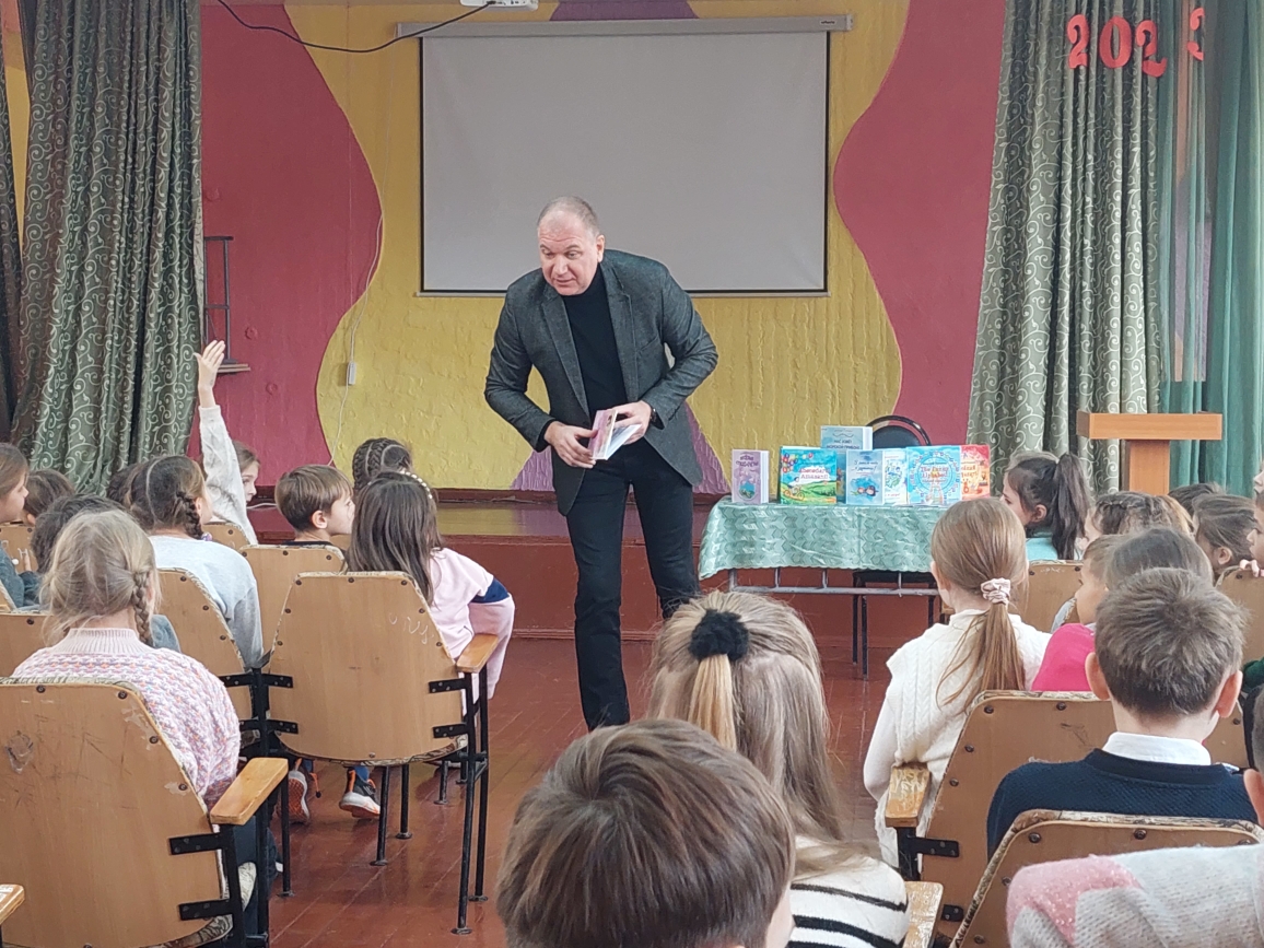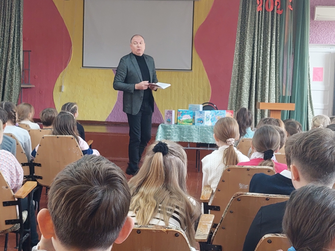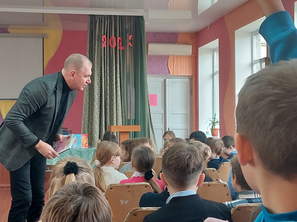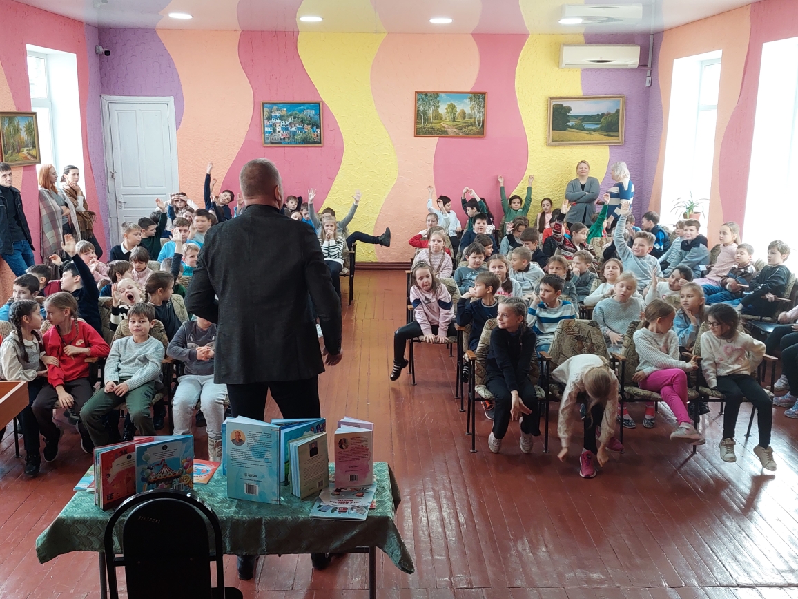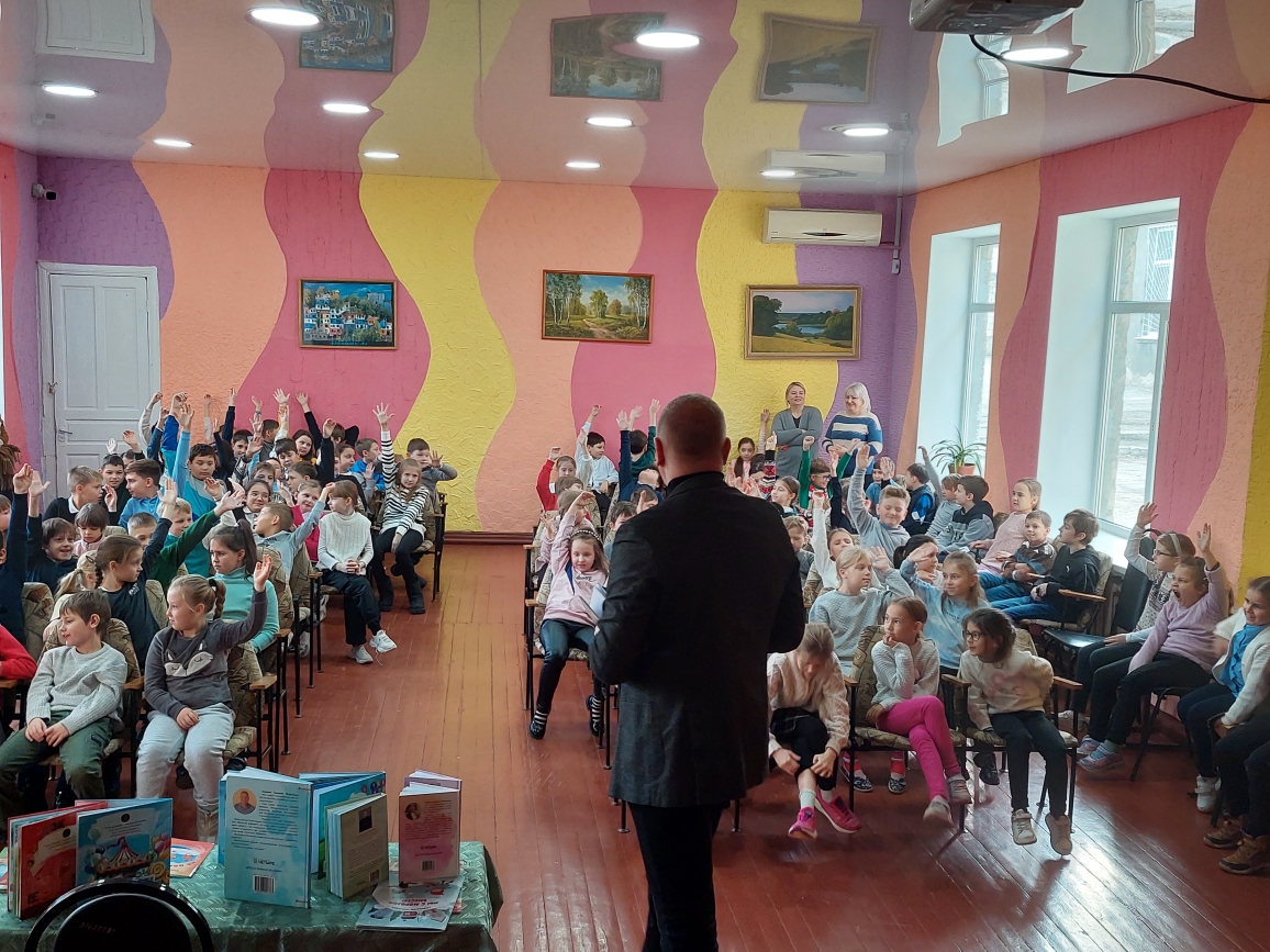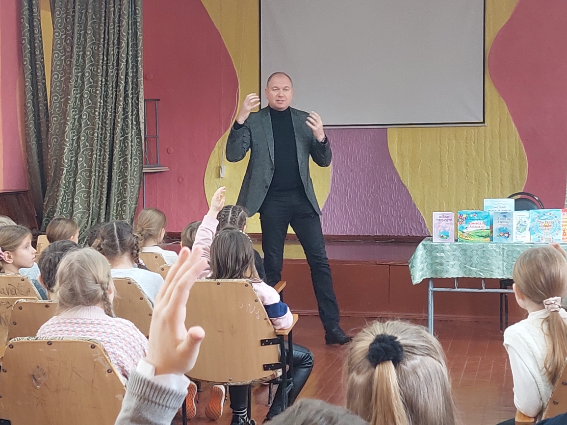 Сегодня в лицее состоялась встреча с поэтом Григорием Гачкевичем. Автор замечательных детских книг рассказал учащимся 2-4 классов о том, как создаются книги, поговорил с ними о поэзии, о рифме, прочитал некоторые свои стихотворения и поиграл с ребятами. Дети с большим удовольствием слушали настоящего поэта, с нетерпением задавали ему множество вопросов. В конце встречи автор вручил детям подарки в виде своих произведений с пожеланиями и автографами и по книге на каждый класс, а библиотеке подарил несколько своих книг. Выражаем огромную благодарность Григорию Гачкевичу за столь интересную встречу!