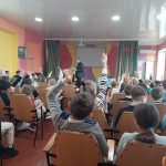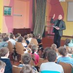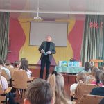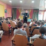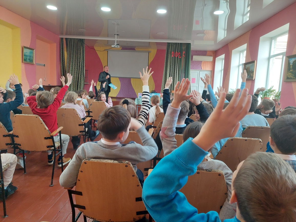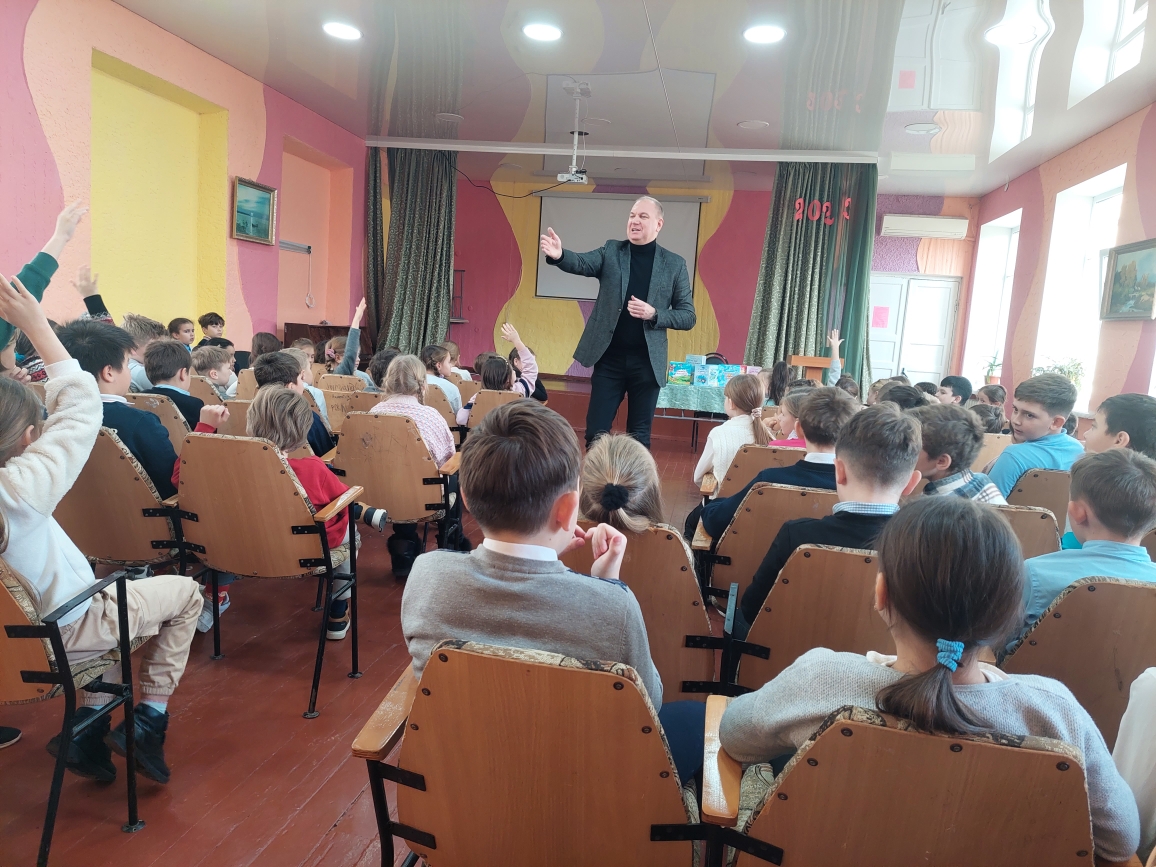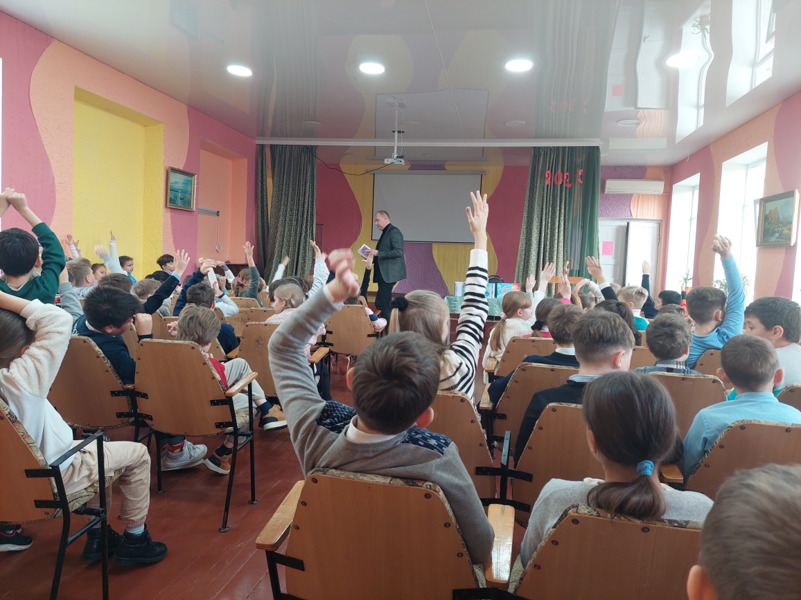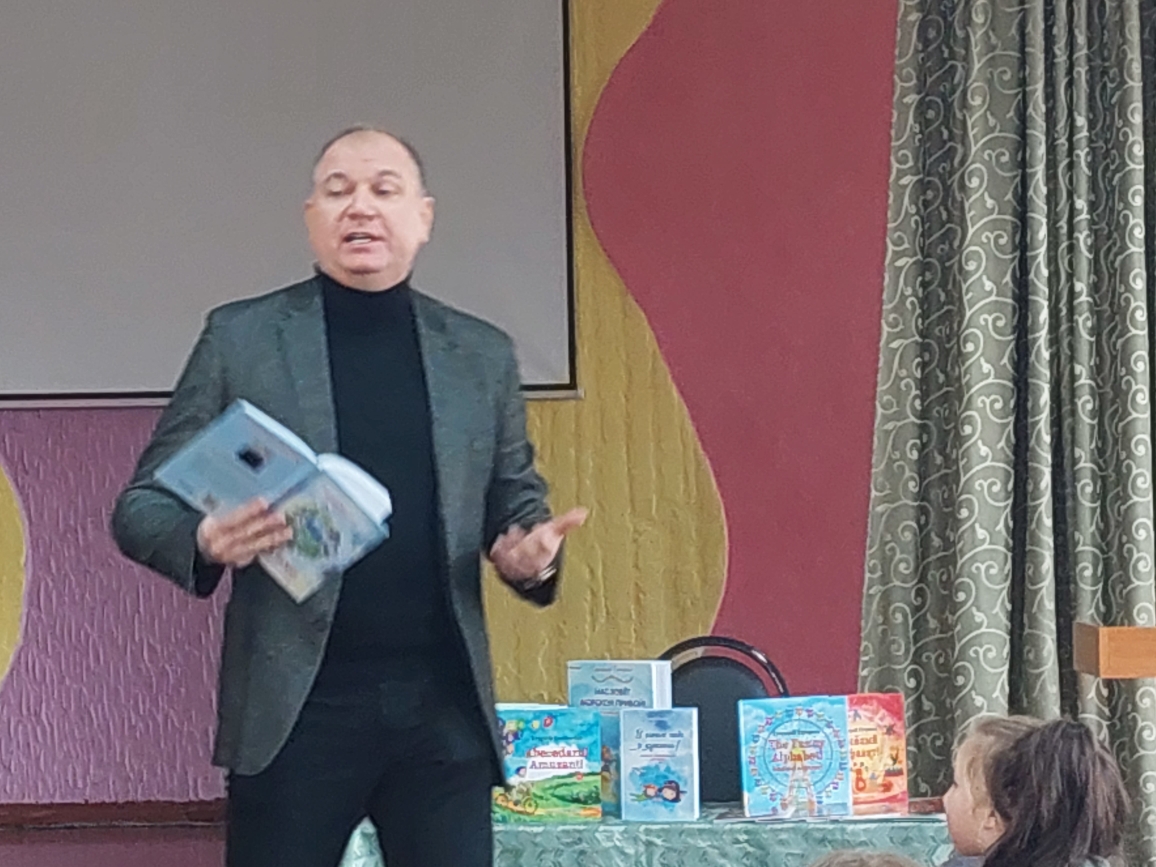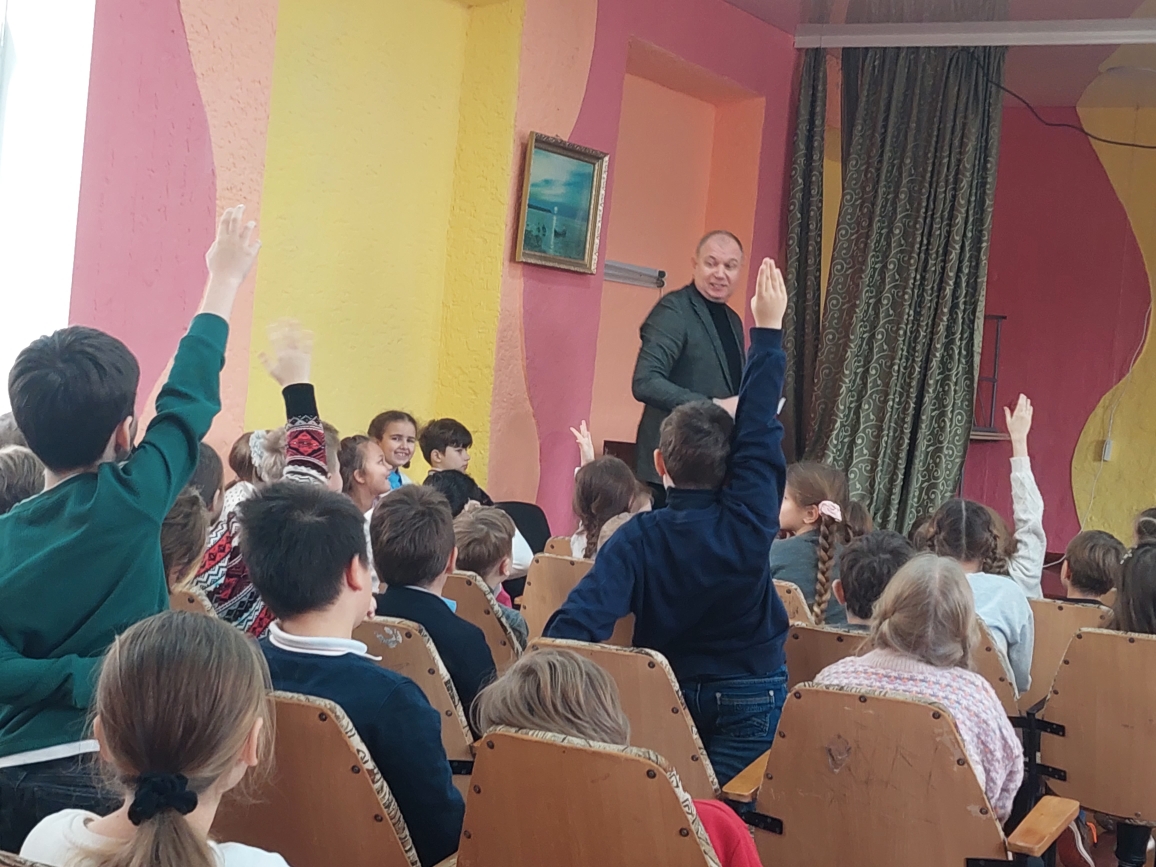 Сегодня в лицее состоялась встреча с поэтом Григорием Гачкевичем. Автор замечательных детских книг рассказал учащимся 2-4 классов о том, как создаются книги, поговорил с ними о поэзии, о рифме, прочитал некоторые свои стихотворения и поиграл с ребятами. Дети с большим удовольствием слушали настоящего поэта, с нетерпением задавали ему множество вопросов. В конце встречи автор вручил детям подарки в виде своих произведений с пожеланиями и автографами и по книге на каждый класс, а библиотеке подарил несколько своих книг. Выражаем огромную благодарность Григорию Гачкевичу за столь интересную встречу!