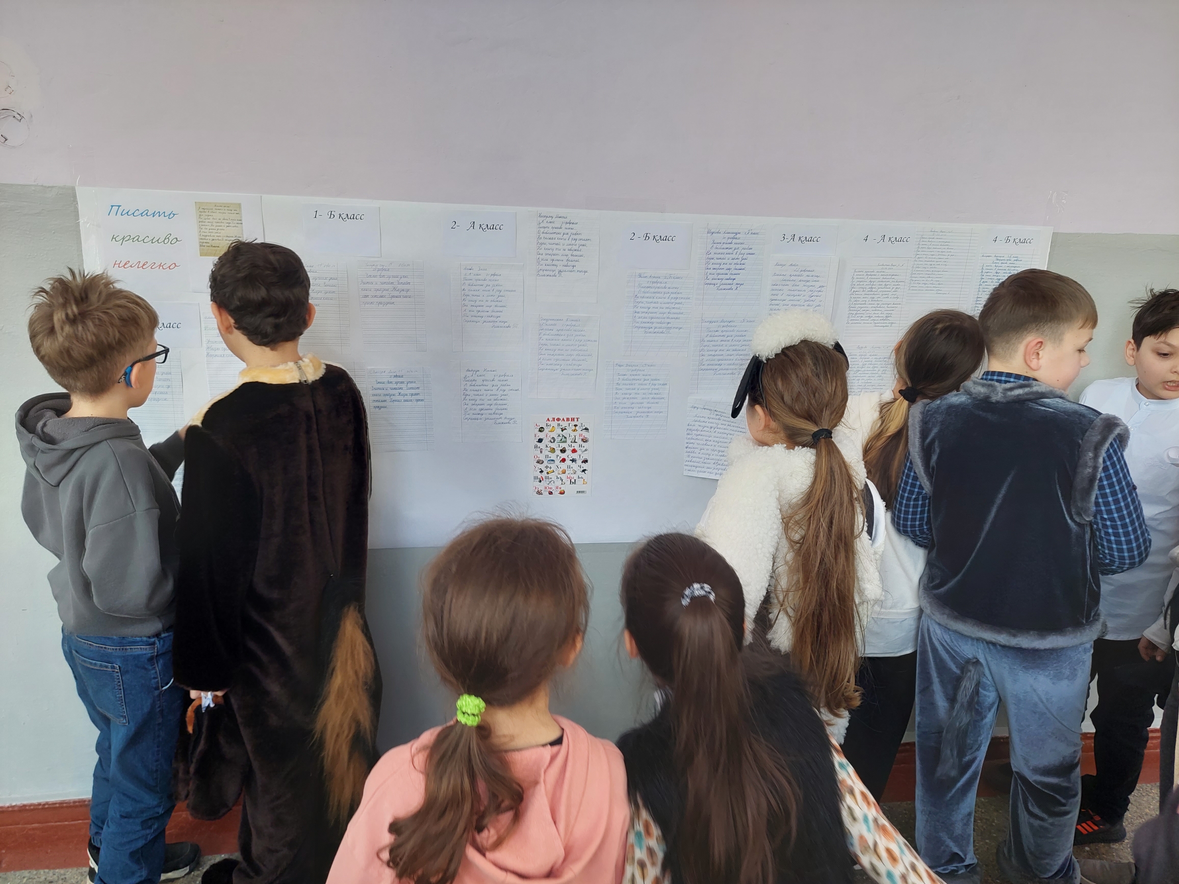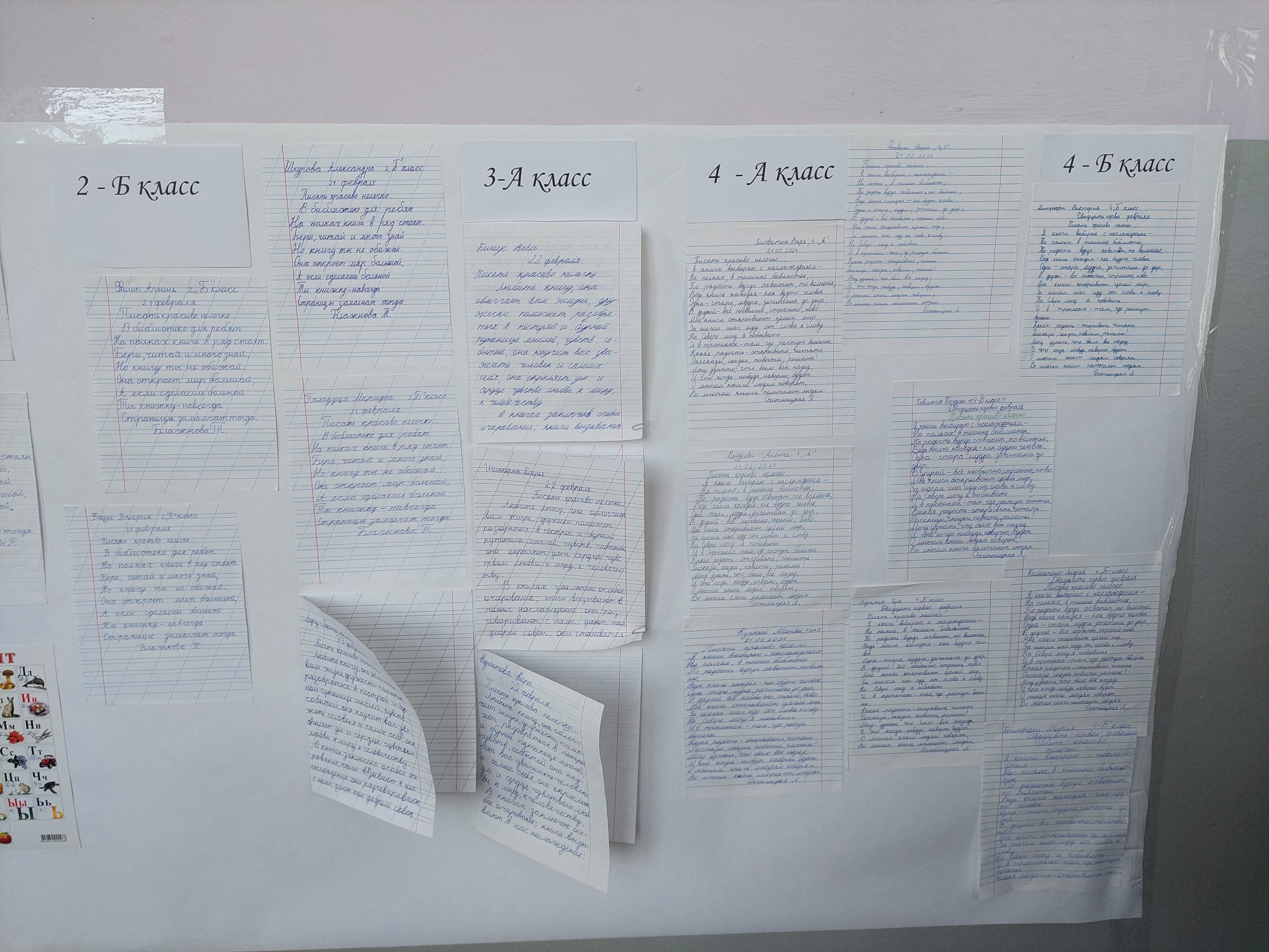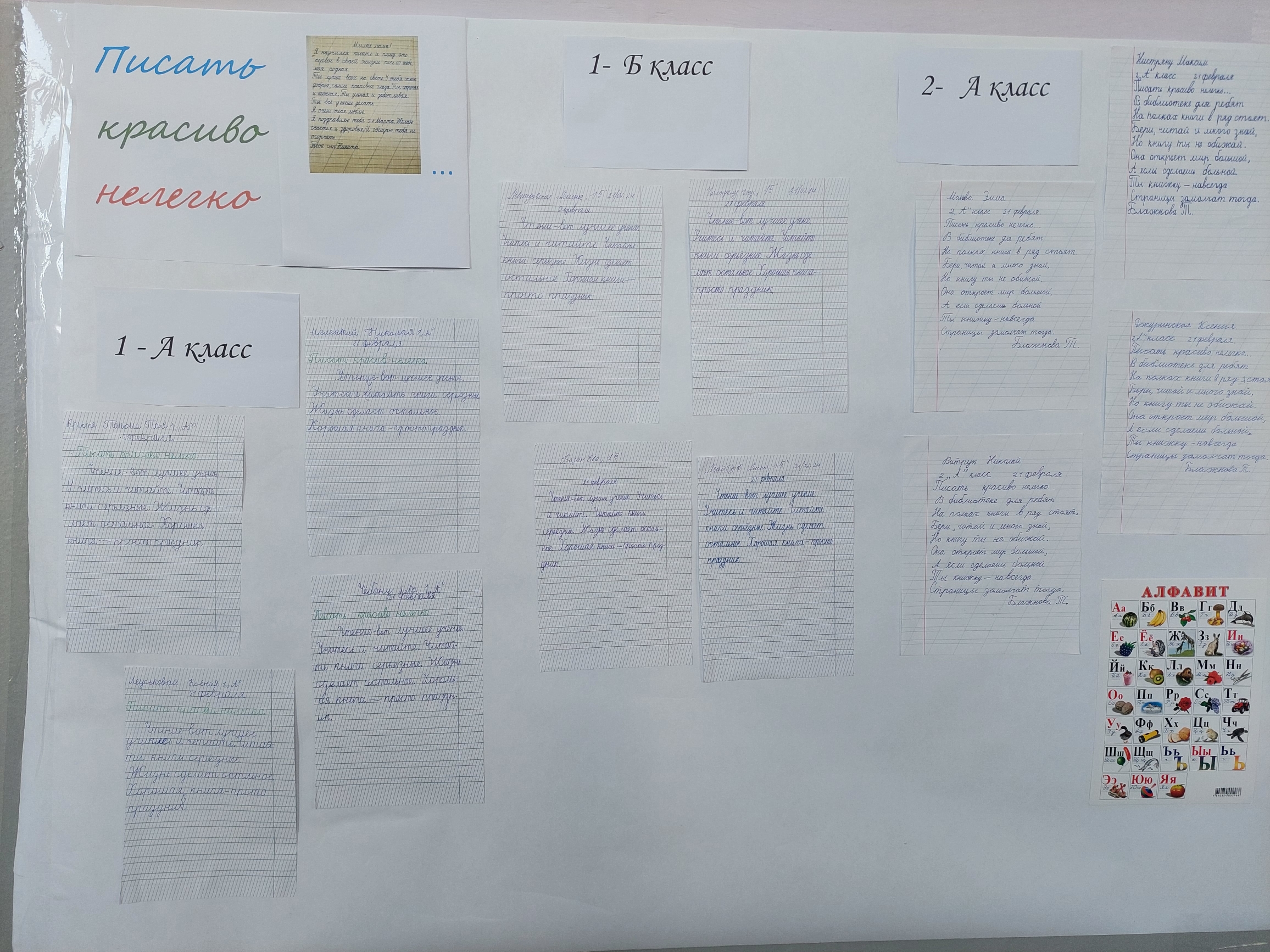 В честь Международного дня родного языка среди учащихся начальных классов было проведено мероприятие по списыванию текстов „Писать красиво нелегко…” и организована выставка лучших работ.