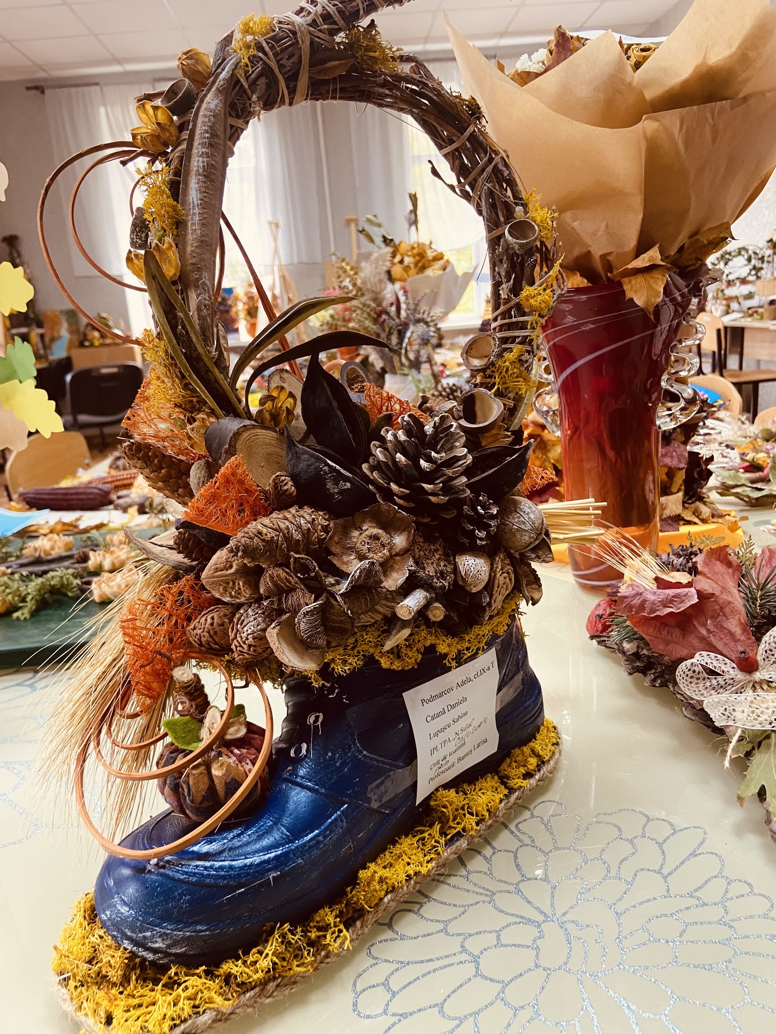 Lucrările originale ale elevilor, care au fost expuse pentru a fi apreciate de comisia de jurizare, au fost confecționate din materiale naturale pentru a ilustra frumusețea și bogăția toamnei pe plaiurile Moldovei.